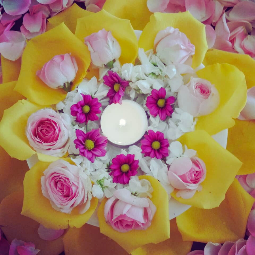Vi yogar och skapar blomstermandalas tillsammans.